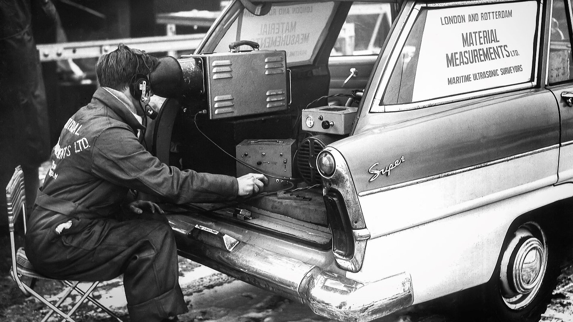 Back in the day, before the 1960s, special surveys of ships required drilling holes in a ship’s hull to determine steel thickness. Obviously, this was an inefficient and costly practice. After emigrating from the United Kingdom, Cedric Talbot started the company Materiaal Metingen NV in The Netherlands in 1963. He was one of the first pioneers who saw the potential of using ultrasonic technology to carry out marine inspections. The first models of this Non-Destructive Testing equipment were heavy and bulky. However, not having to drill holes was well worth the effort and the new technology found quick adoption throughout the marine industry.
