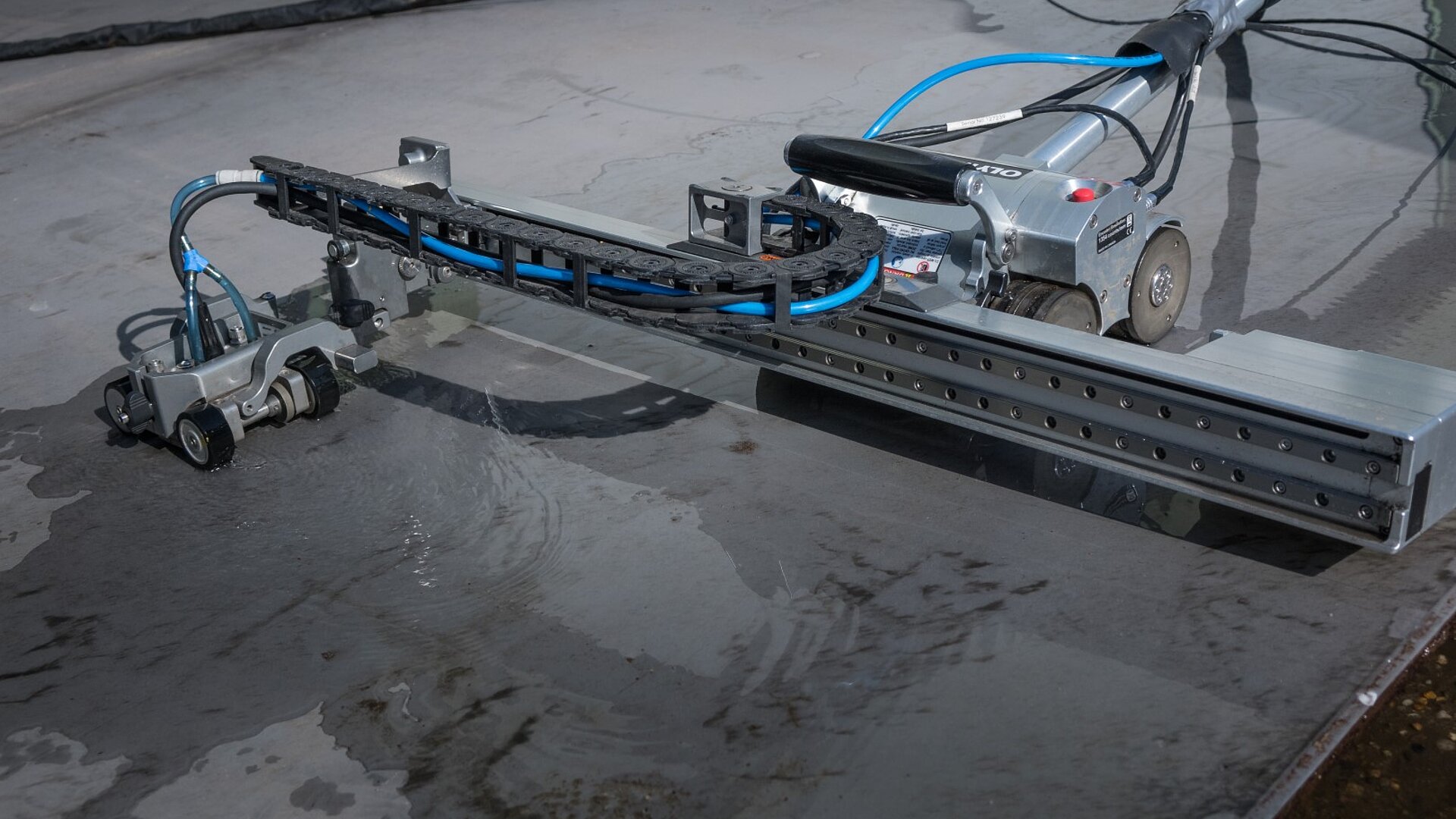 When you’re dealing with a large material surface, manual testing takes more time and the Probability of Detection (PoD) is lower, than would be the case with a small test object. MME Group provides a suitable solution with automated Ultrasonic Testing. This involves the use of an advanced robot that rides along the surface of the inspected material on magnetic wheels. The device scans the material automatically over a 60 cm wide area using Phased Array technology. The test data is stored digitally, making later analysis possible.