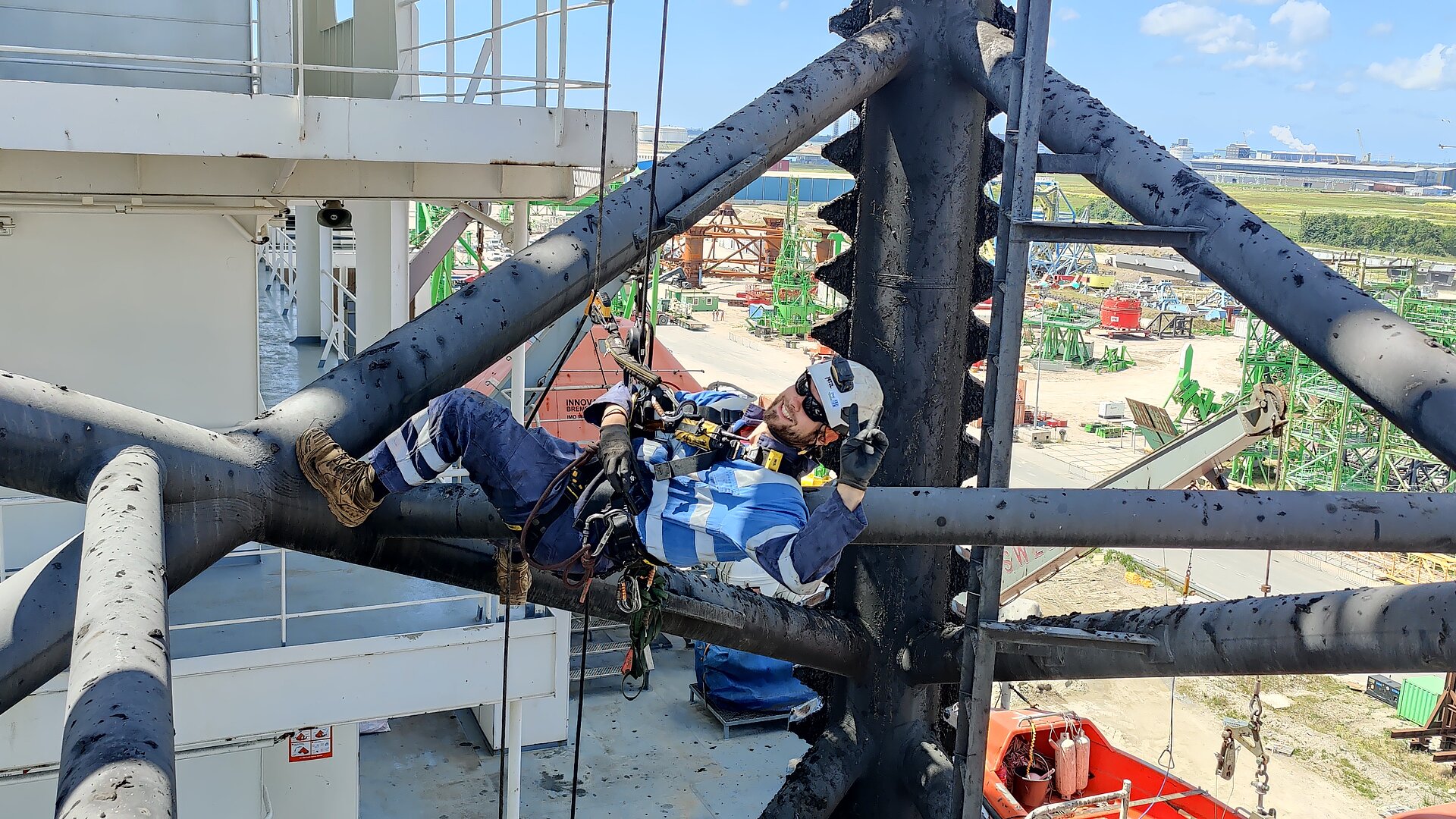 “During this position you will be trained to become an experienced maritime inspector through a traineeship. As a maritime inspector you inspect metal structures of, for example, ships using NDT (Non-Destructive Testing) in the Netherlands and abroad. In addition, climbing (inspections using Rope Access) is also commonly used in this position, which seemed the perfect combination to me.”