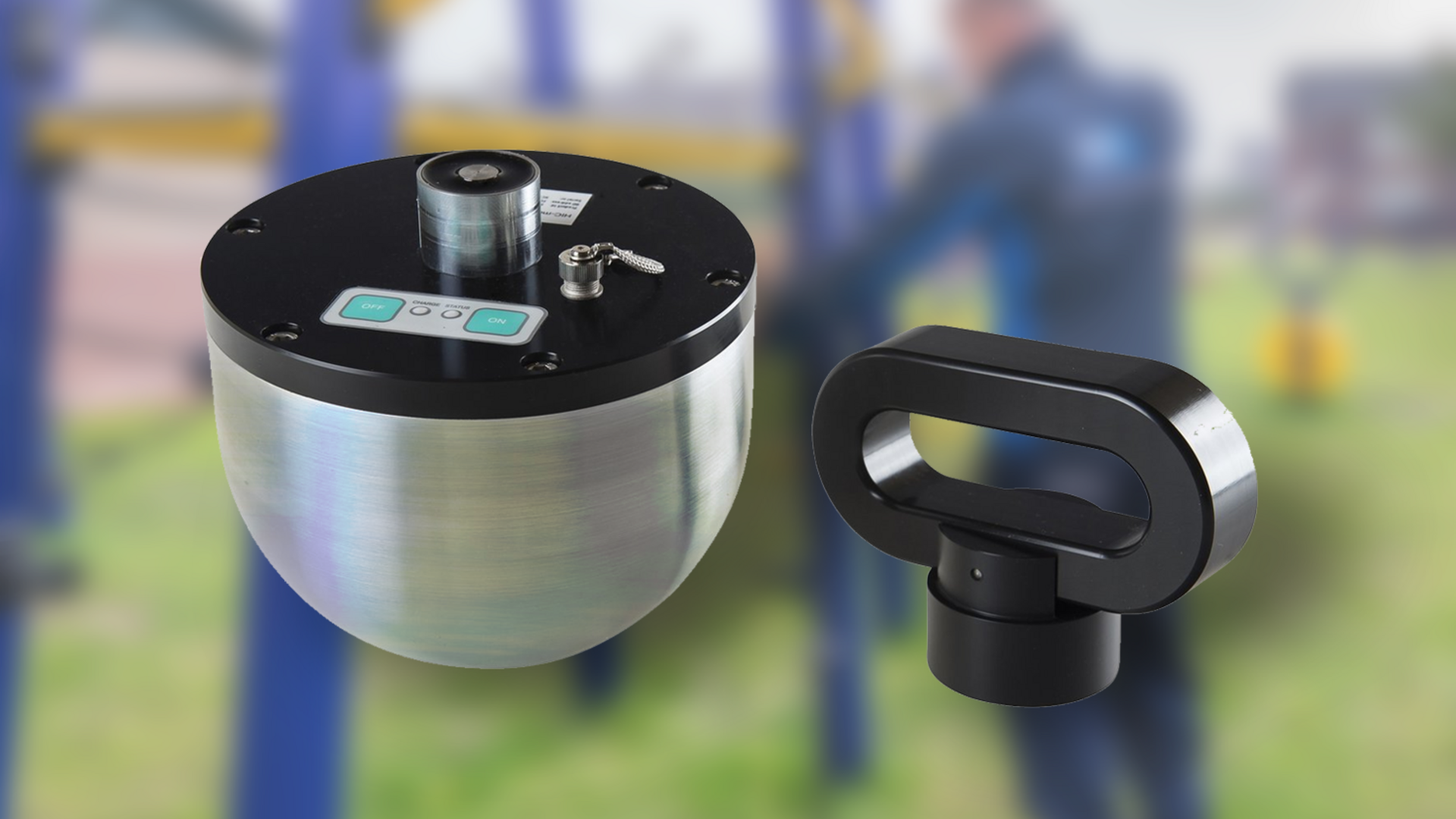 The wireless HIC Meter consists of hemispherical mass containing an acceleration sensor and a magnet which is attached to a handheld device. The inspector holds the device up to the required height. To carry out the test, the electromagnet that holds the handle is disengaged causing the device to fall. The device registers the acceleration during the fall and the rapid deceleration during the impact with the ground. A bluetooth connected device (usually a smartphone) translates the results of the test into a HIC value which indicates whether the shock attenuation of the surface is suffifient, based on the applicable standard (NEN-EN 1177).